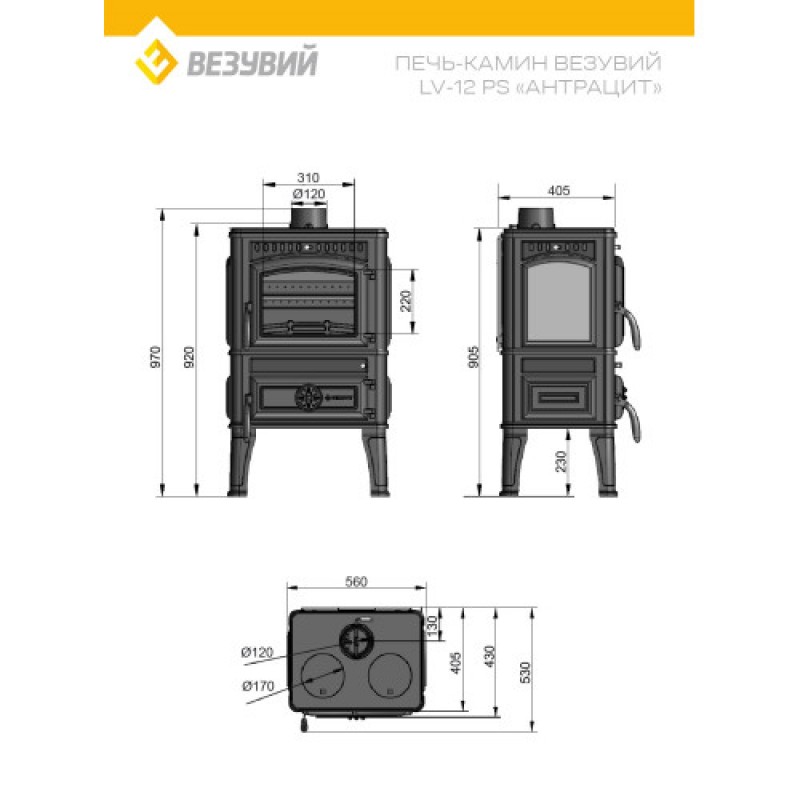 Печь-камин Везувий LV-12PS «Антрацит» — это мощная и многофункциональная модель, сочетающая в себе эффективный обогрев, эстетику живого огня и практичность варочной поверхности. Изготовленная из высококачественного жаростойкого чугуна (ГОСТ 1412-85), эта печь станет сердцем вашего дома, создавая комфортную атмосферу и обеспечивая теплом помещение объемом до 240 м³. Вес печи 160 кг.