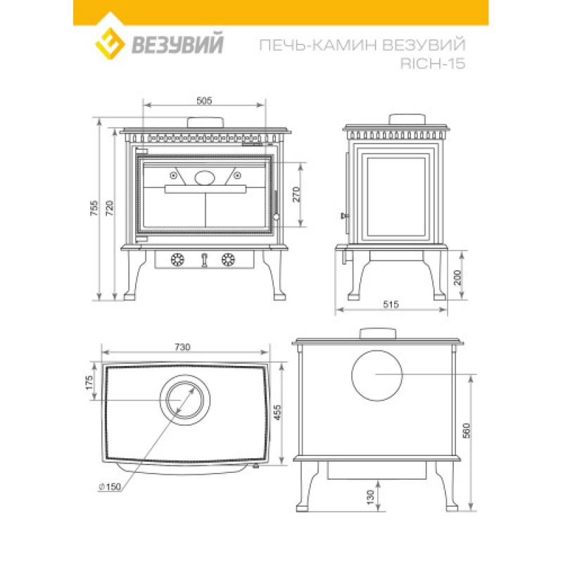 Печь-камин Везувий RICH-15 — это не просто отопительный прибор, это стильный и мощный акцент в вашем интерьере, который подарит вашему дому уют и комфортное тепло даже в самые холодные вечера.