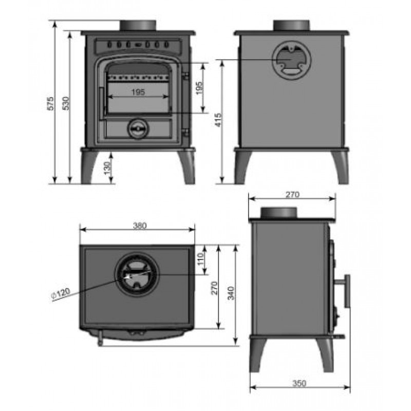 Патрубок дымохода Ø 120мм – универсальный, со сменным положением. Он может быть установлен сверху или сзади в зависимости от размещения печи в помещении.