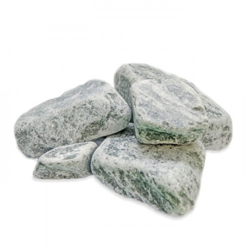 Змеевик (серпентинит) обвалованный обладает высокой теплоемкостью (долго держит и равномерно отдает тепло). Хорошо выдерживает температурные перепады, устойчив к растрескиванию. Камень серо-зеленого цвета различной формы с закругленными краями. Закругленные края позволяют воде легко проникать в глубь каменки к более нагретым камням.