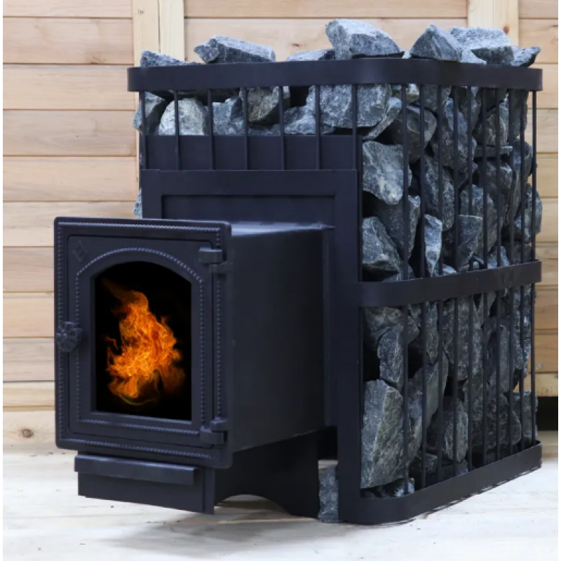 Особенностью данной модели является дверца со стеклом, позволяющая наблюдать за процессом горения дров и придающая дополнительный уют вашей бане. Протопка печи осуществляется из смежного помещения, что помогает поддерживать чистоту в парилке и облегчает загрузку дров. Открытая каменка обеспечивает равномерное и быстрое прогревание камней, создавая идеальные условия для парения.