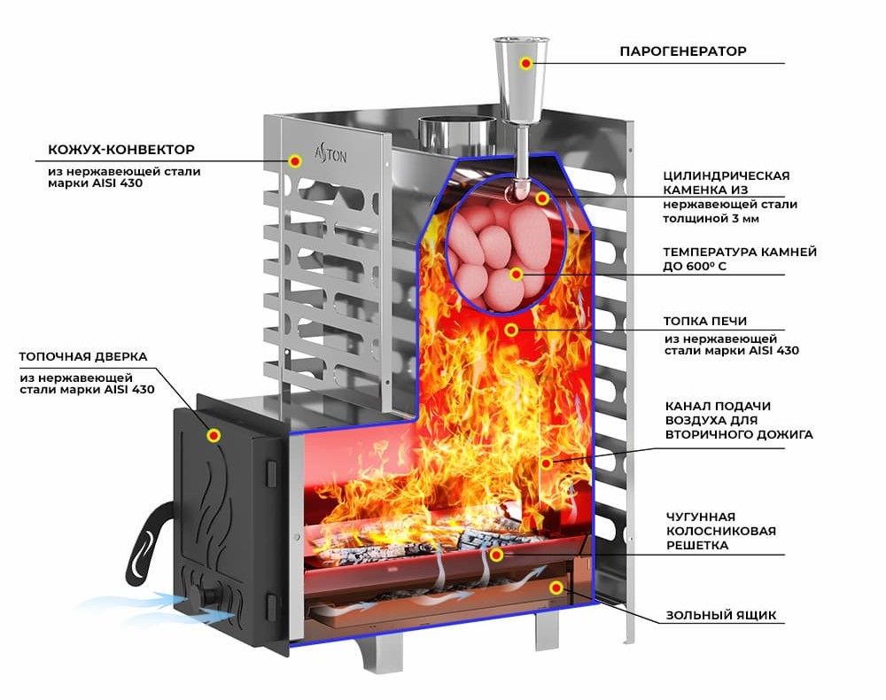 Печи ASTON изначально сконструированы и изготовлены таким образом, чтобы получить максимальную тепловую эффективность при минимальных затратах ресурсов: времени и топлива.