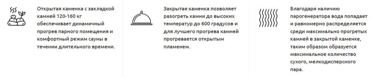 - Глубокая невентилируемая каменка-труба из стали 09Г2С толщиной 4 мм прогревается открытым пламенем для максимального нагрева камней, заложенных в нее и выполняет роль пламегасителя.