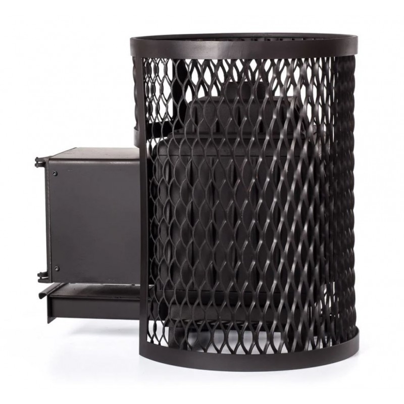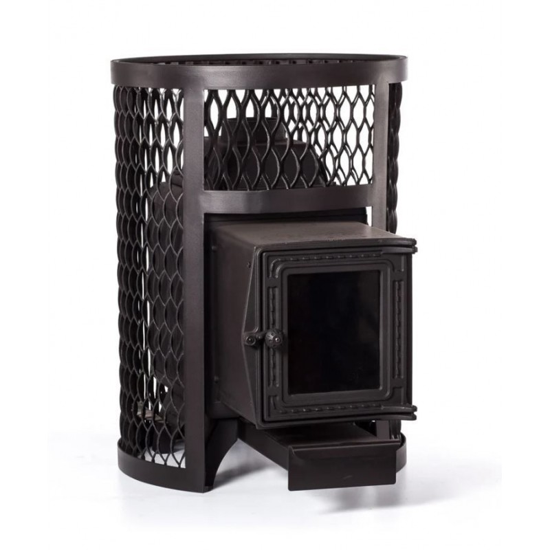 Банная печь FireWay Pro-Пар Кольчуга 18 (201) — печь из чугуна и стали для парильных помещений объёмом 10-18 м.куб. Печь с верхним подключением дымохода и выносной топкой со стеклом в дверце. Производитель предлагает два варианта модели: одна без сетки, другая с сеткой для камней вместимостью 100 кг.