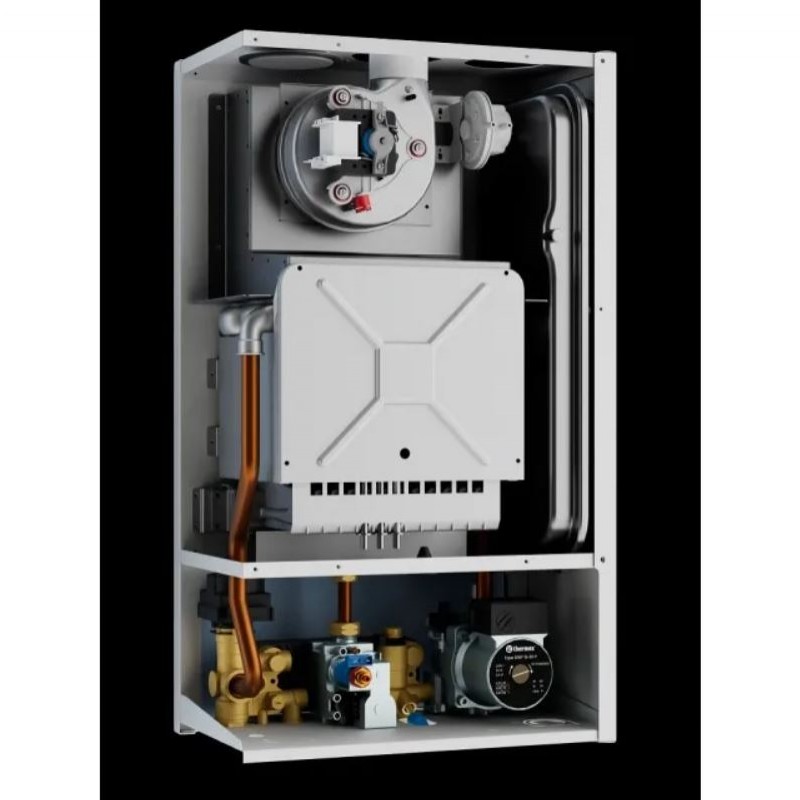 Высокий КПД 93,1% и точная модуляция мощности гарантируют экономию газа до 25% без компромиссов в тепловом комфорте. Надежная латунная гидравлическая группа и трехходовой клапан с сервоприводом обеспечивают долговечность и стабильность работы. Многоуровневая система безопасности включает защиту от замерзания, контроль давления и автоматическую диагностику неисправностей.