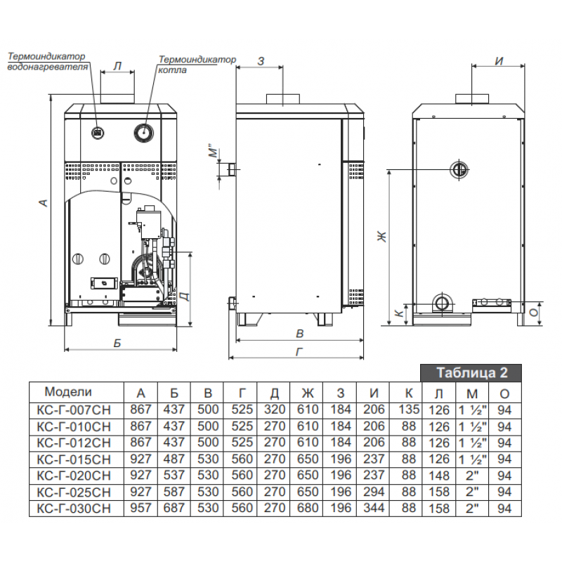 - Расход природного газа – 2.74 м³/ч (2 - водоподогрев)