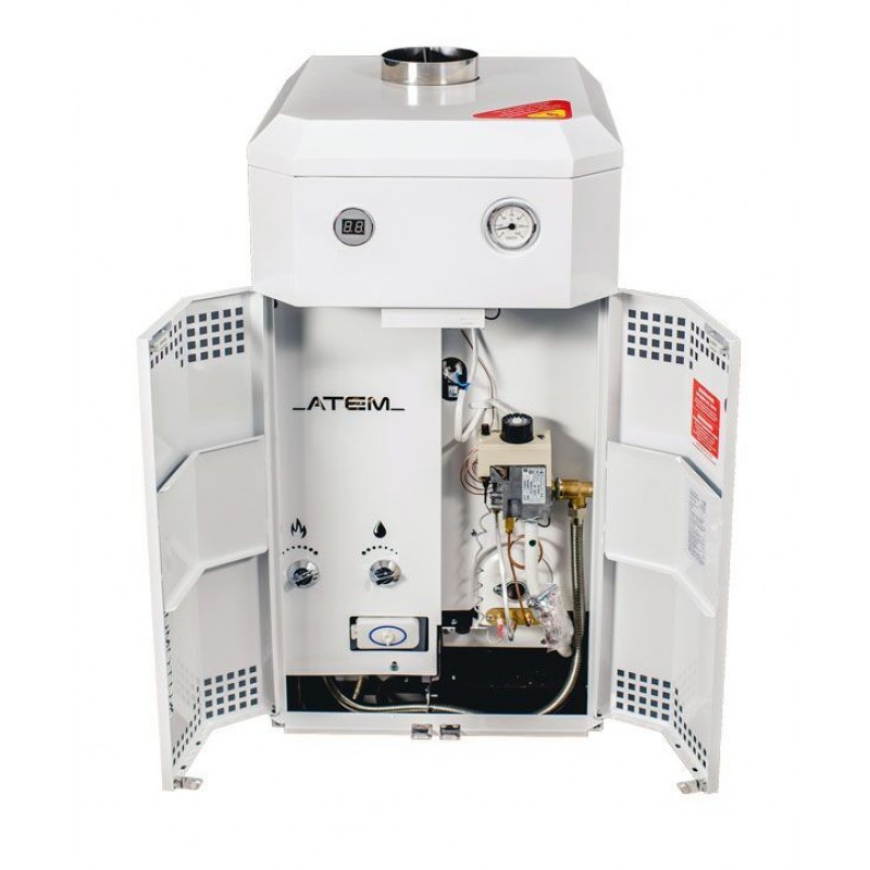 В отличие от простых "открытых" компенсаторов тяги, которые и до сегодняшнего времени используются в котлах многих марок, котлы Атем оснащены фирменной плавающей заслонкой газохода, которая с одной стороны препятствует потере теплого воздуха из помещения, а с другой обеспечивает стабильную работу датчиков безопасности котла.