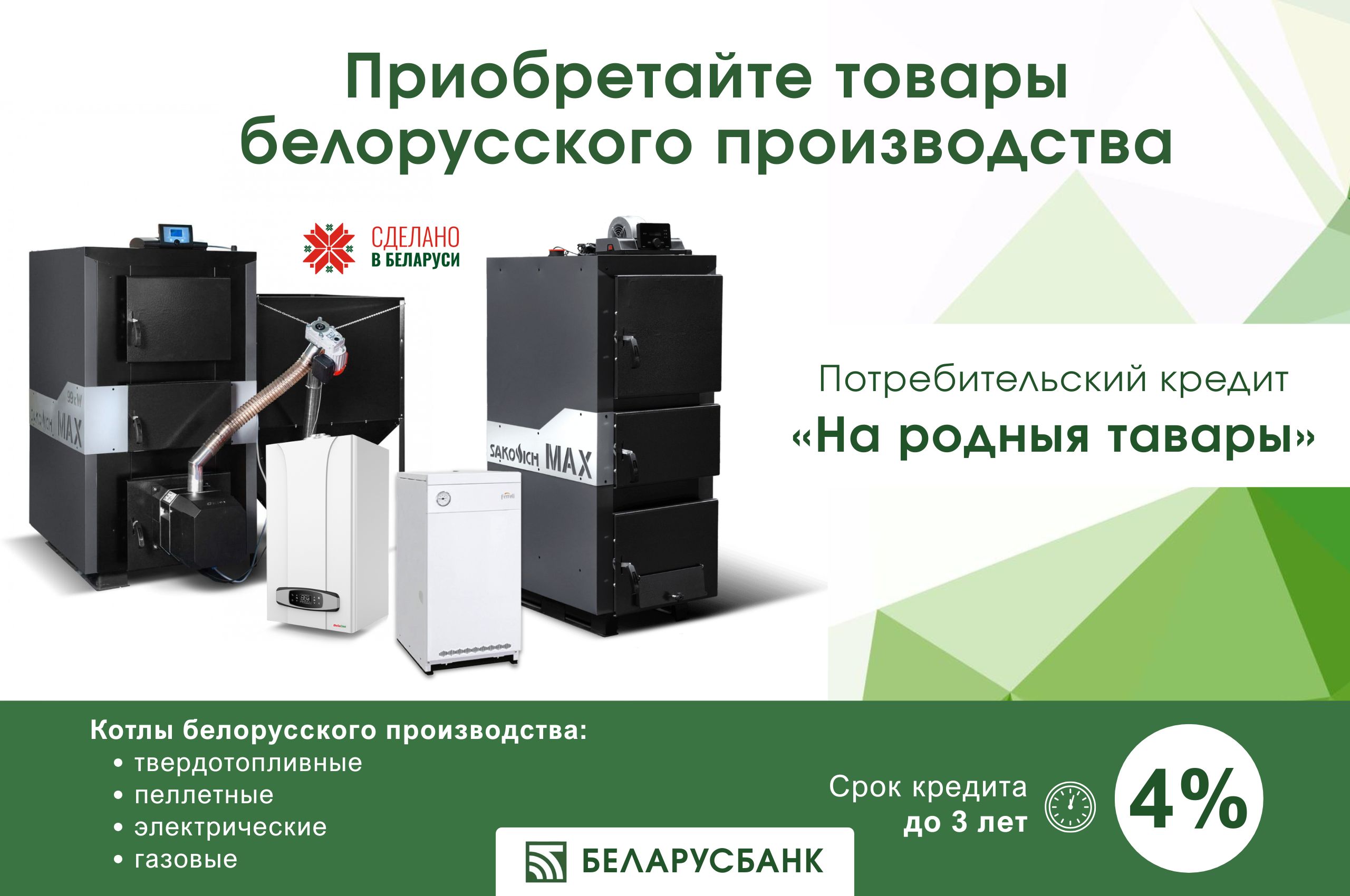 Рады Вам сообщить, что купить котлы белорусского производства можно в кредит всего под 4% годовых!