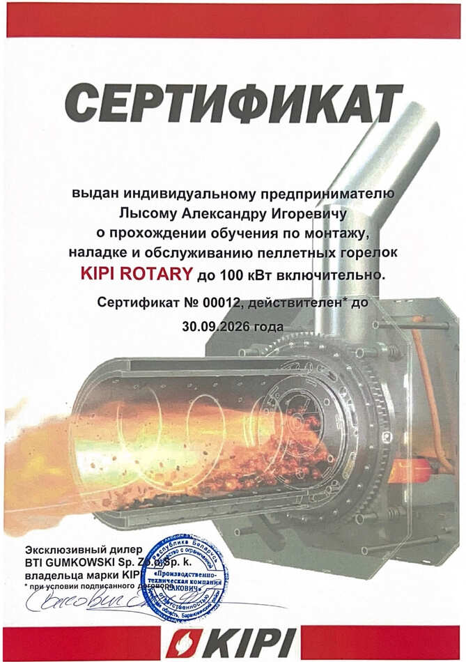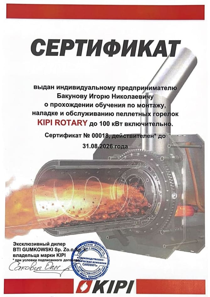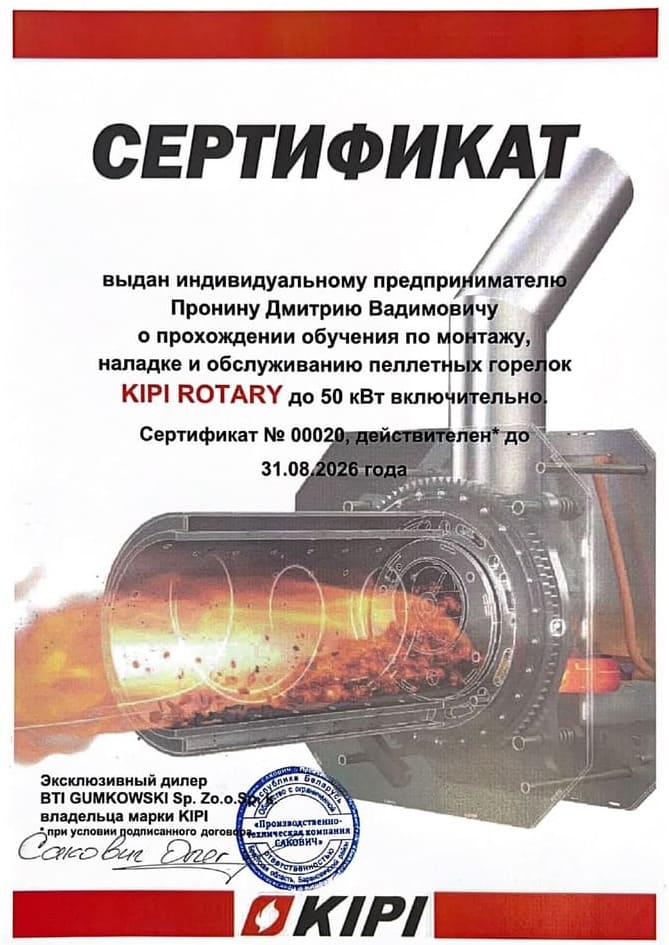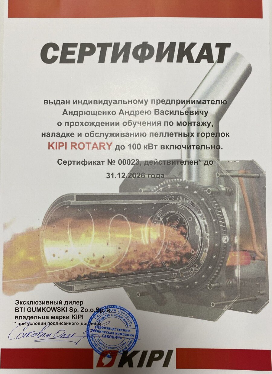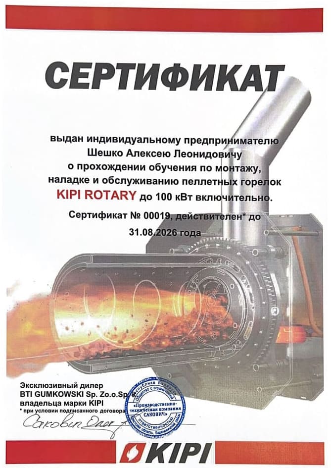 по монтажу, наладке и обслуживанию пеллетных горелок KIPI ROTARY