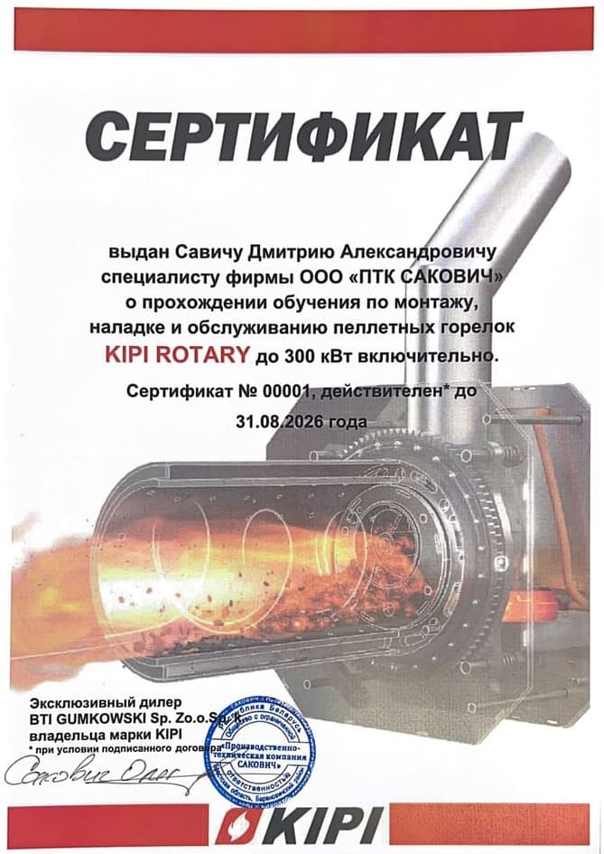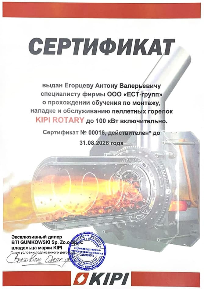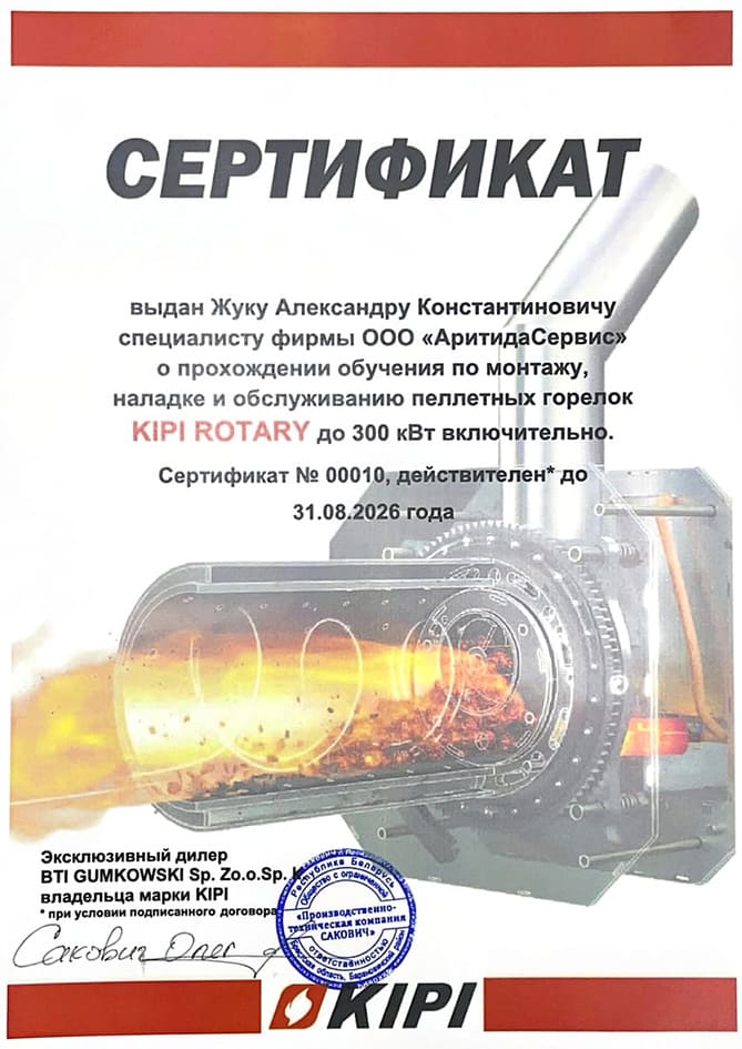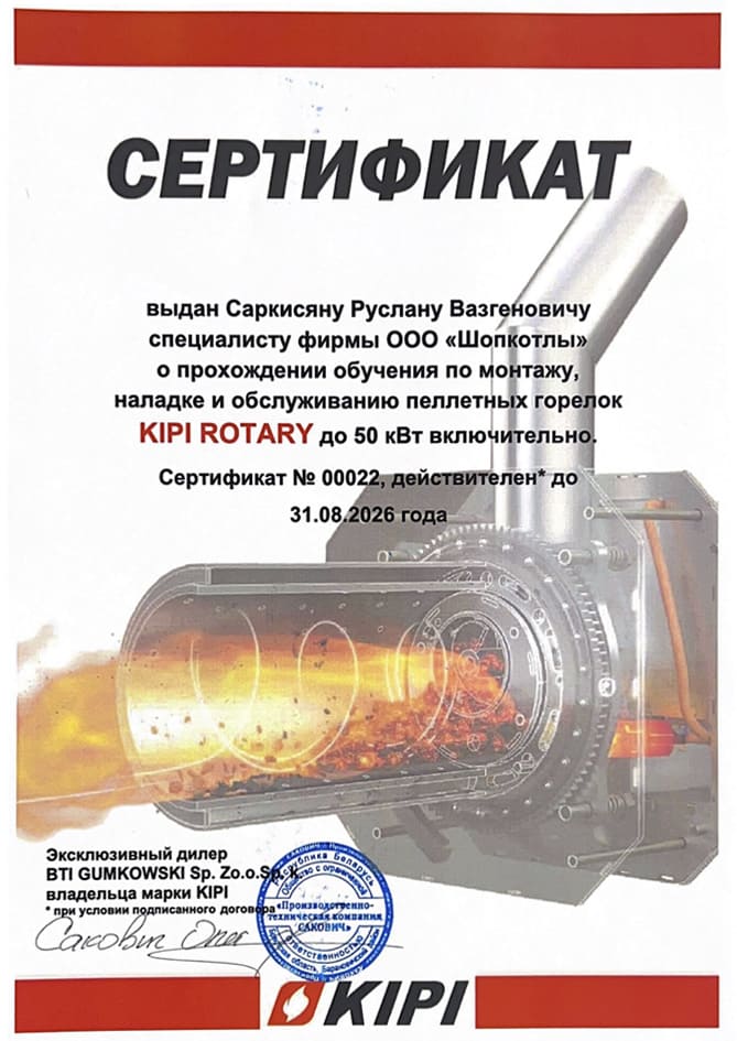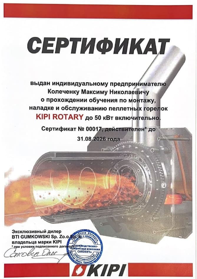 по монтажу, наладке и обслуживанию пеллетных горелок KIPI ROTARY