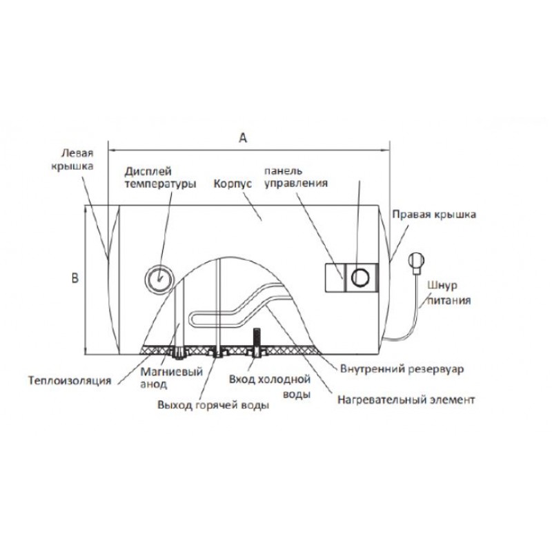 - плотный слой термоизоляции позволяет воде внутри бака дольше оставаться горячей;